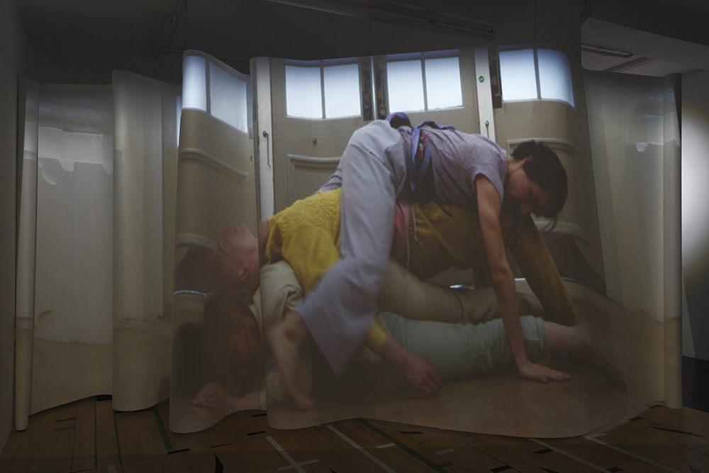 EMDW: Some of the movement allegories your performers create are archaic now, alluding to paradise, heaven and monsters. It is interesting to look at the shapes the bodies make and to disassociate them from the instructions read in the audio that is part of the installation. For example, ‘How To Transform A Man Into A Rock Or Similar Object’ for me carried a potentially darker significance, perhaps a pile of injured bodies. This may be due to the constant stream of shocking images circulated by the media, yet it is also true that bodies have a devastatingly real aspect and I wonder whether this duality is of interest to you; this notion that dreams or fantasies can sometimes turn to nightmares.