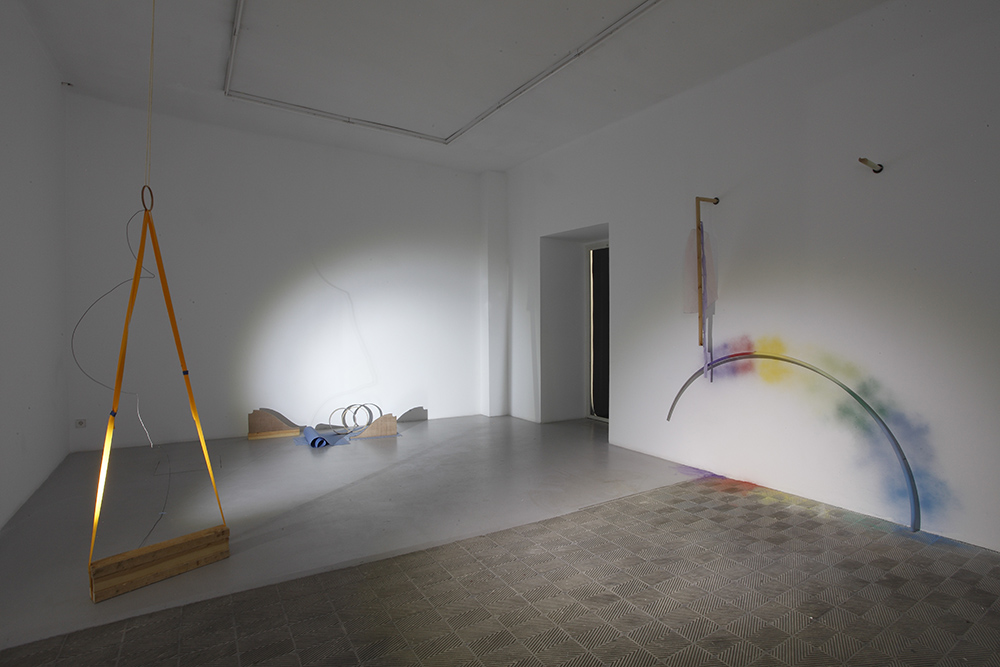 LSR: I consider them not so much as sculptures but as spatial diagrams. I like to think of them as a temporal prop or a rig. If the book is a magician’s manual, the instructions and diagrams are a guide for making. But they are very abstract, which allowed me to openly interpret them. In this respect, the compositions are not unique but in a process of constant change. For example, ‘How to Make a Rainbow’ could be the title of more than one composition or a constantly changing form, something that mutates over time. In the same spirit, the book is presented as a set of rules or a script, where the limitations are only a starting point for acting and making: a framework that determines a range of possible actions or shapes.