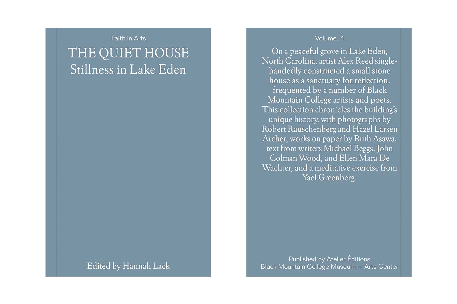 On a peaceful grove in Lake Eden, North Carolina, artist Alex Reed singlehandedly constructed a small stone house as a sanctuary for reflection,frequented by a number of Black Mountain College artists and poets. This collection chronicles the building’s unique history, with photographs by Robert Rauschenberg and Hazel Larsen Archer, works on paper by Ruth Asawa, text from writers Michael Beggs, John Colman Wood, and Ellen Mara De Wachter, and a meditative exercise from Yael Greenberg.