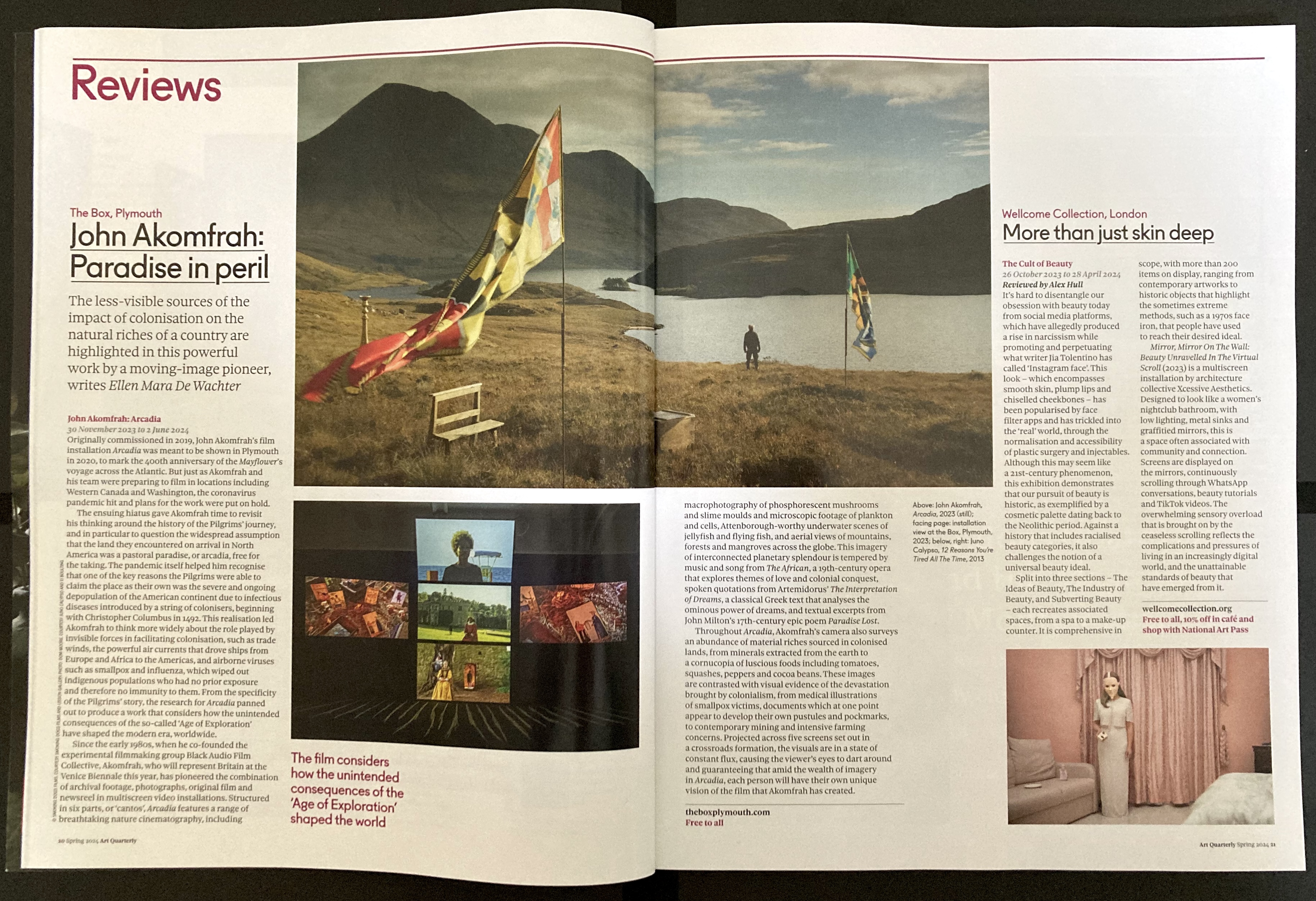 Review of John Akomfrah’s Arcadia (2023) at The Box, Plymouth for Art Quarterly, Spring 2024