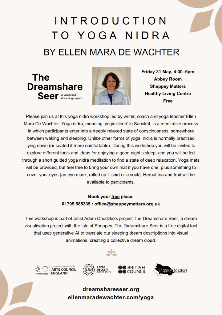 On 31 May, I will be leading an in-person yoga nidra workshop at Sheppey Matters Healthy Living Centre. For more information and to book, please see the flyer below.