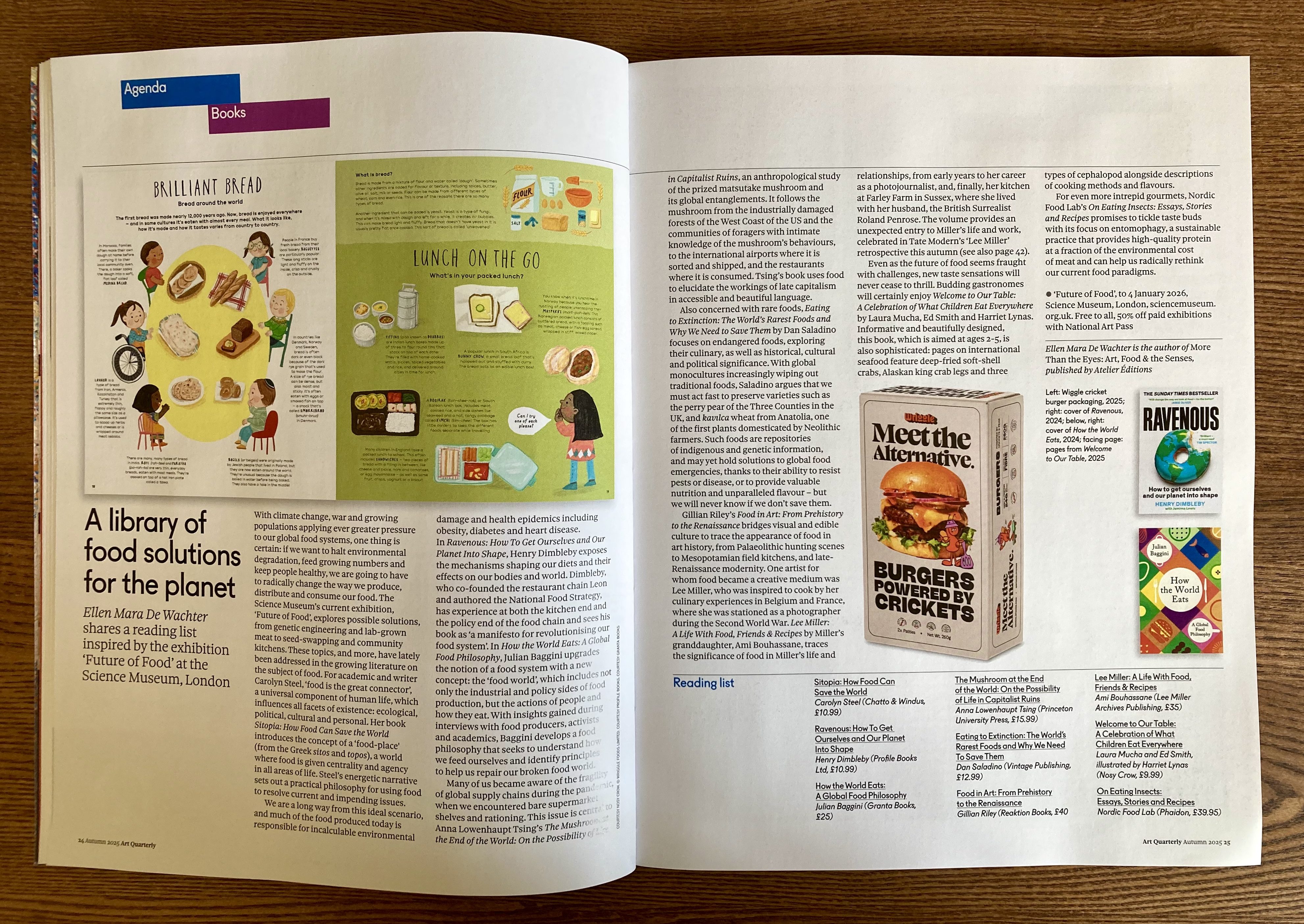 I compiled a library of food solutions for the planet, for the Autumn 2025 issue of Art Quarterly, inspired by the exhibition ‘Future of Food’ at the Science Museum, London.