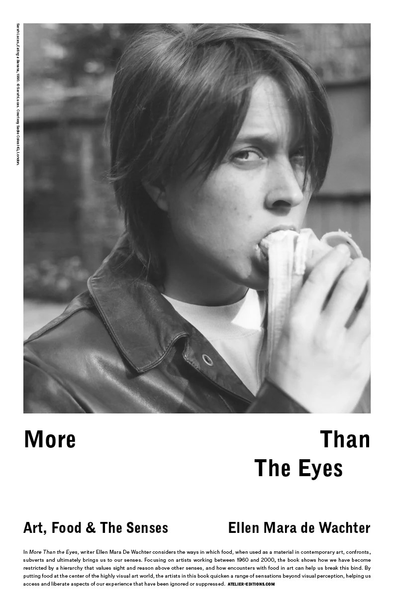 - The Slowdown by Spencer Bailey reviews More Than The Eyes — “In her beautiful, highly stimulating new book, De Wachter explores artistic food interventions in works by artists such as Agnes Denes, Sarah Lucas, Carolee Schneemann, and Andy Warhol, delving into their oeuvres through the angle of food. Ultimately, De Wachter makes the case that, in a world where sight is prioritized above our other senses, it’s innately expansive, enlivening, and mind-expanding to work with mediums that can also be smelled, tasted, and touched.”